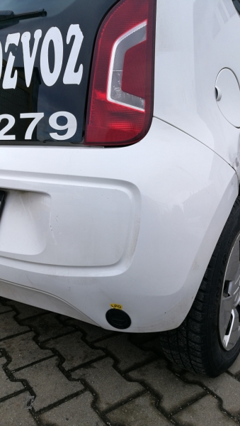 Volkswagen UP 1.0 44kW s italským zařízením BRC a nádrží místo rezervy.